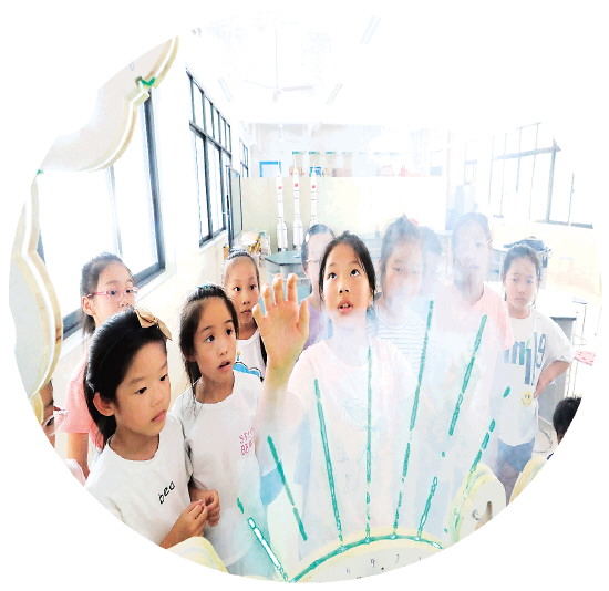 beat365亚洲体育在线官网附属小学的孩子们好奇地弹着空气琴。这个空气琴是该校师生一起动手制作的教具,展示了科学+艺术的魅力。